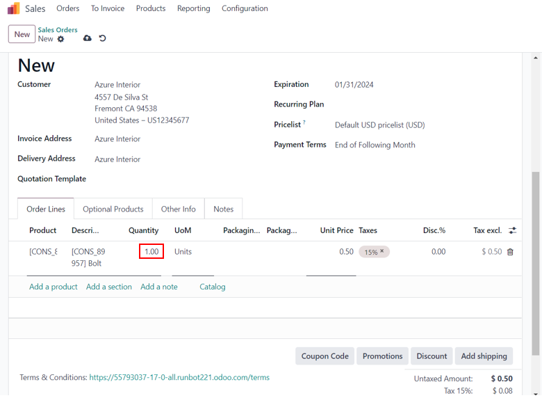 In the Quotation, we can add the customer and the product, Bolt along with their quantity and packaging details.