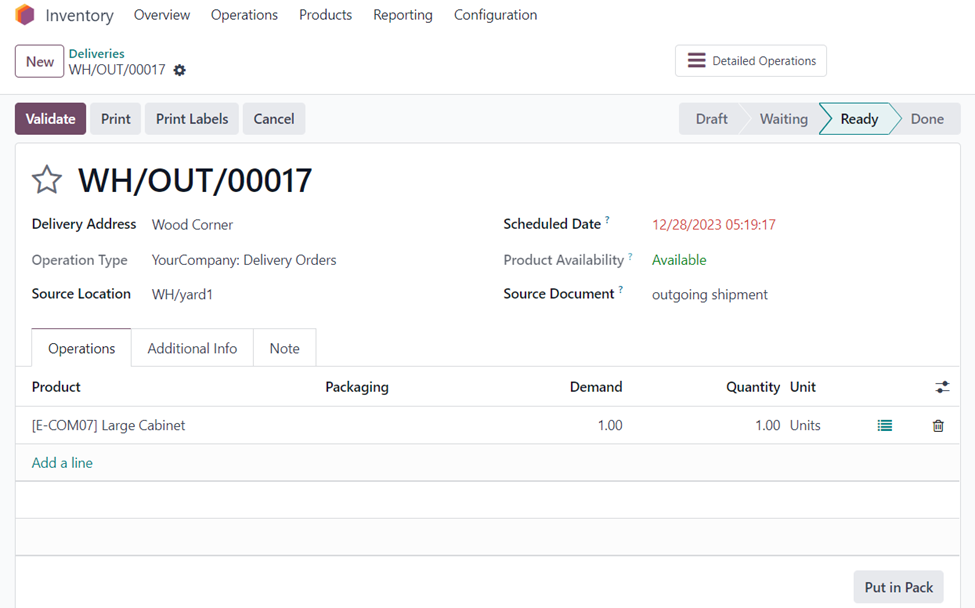 There is an option, ‘Put in Pack’ at the bottom-right corner of the delivery order. On selecting the option, we can arrange the products in the order in the pack.