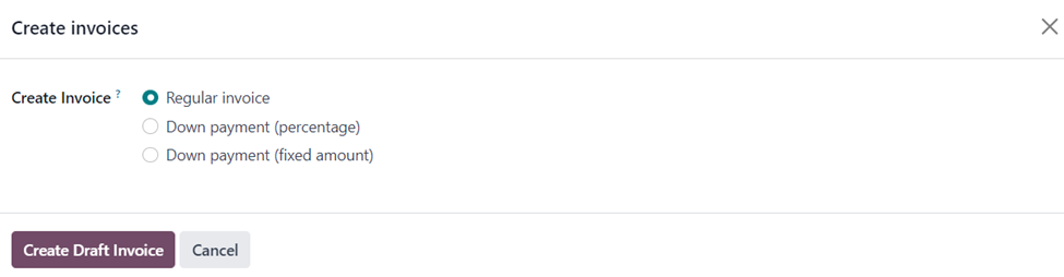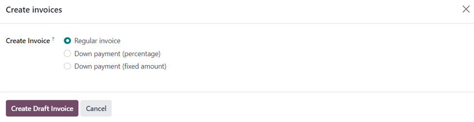 A pop-up window appears in which we need to specify its Invoice method by selecting the required method in the ‘Create Invoice?’ field and clicking on the ‘Create Draft Invoice’ option.