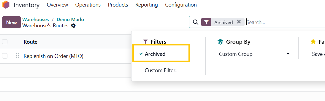 Select Replenish on Order (MTO) and unarchive it: