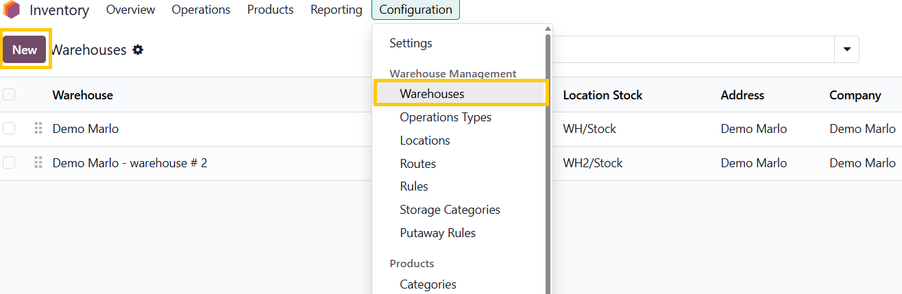 - Internal Transfer: Move existing stock from another warehouse to the new warehouse using the Internal Transfer feature in the inventory system.